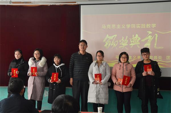 1月10日,马克思主义学院在一教527隆重举行社会实践优秀成果暨优秀论文颁奖典礼。团委副书记焦红良,马克思主义学院院长陈国庆,副院长任颖栀,学院全体教师及获奖学生参加了颁奖典礼。颁奖典礼由社会实践教研室主任华章琳主持。