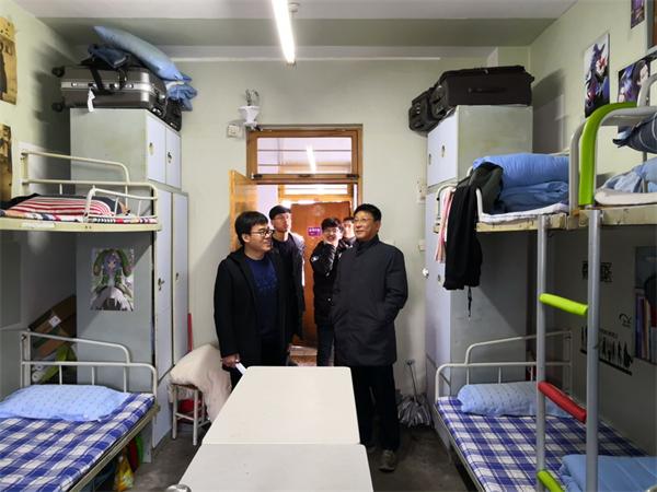 “家是哪里的”、“考研还是工作?”、“宿舍还是要勤通风,晒被褥。”走访过程中,学院领导、老师们与学生亲切交谈,详细询问学生的寒假生活情况,认真听取学生对学院工作的意见和建议,了解学生的新学期打算和学习、工作设想,并就毕业生就业、考研工作、毕业设计(论文)工作、安全问题等与同学们进行了深入交流。希望学生干部、学生党员、入党积极分子和导师组负责同学能够起到带头作用,组织、带领同学们共同清洁、维护宿舍和专业教室。