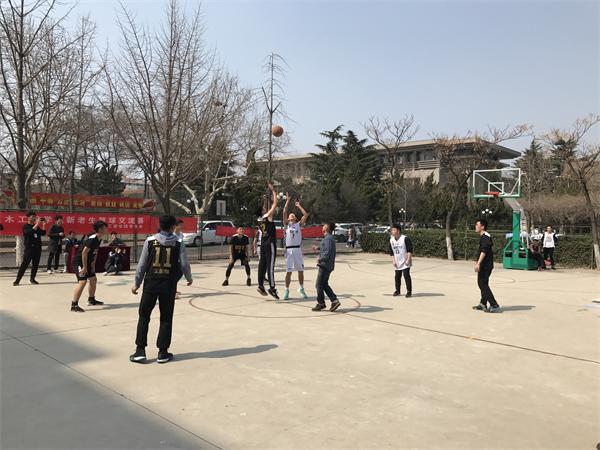 3月14日,土木工程学院第三届阳光体育节开幕式暨新老生篮球交流赛在市北校区二公寓前篮球场举行。土木工程学院团总支书记邵先锋、年级辅导员王中帅参加开幕式。