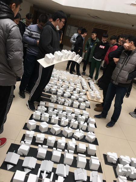为了提高学生对专业作业的完成效率,加深对专业作业的理解程度,帮助学生进一步打牢专业基础,提高逻辑思考与动手能力。3月14日上午,建筑学专业聂彤、程然、朴勋等老师在专业课期间于建筑馆二楼大厅为学生们进行了模型解构作业讲评。