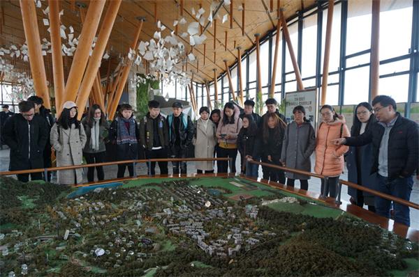 在中德生态园,师生们被可步入式沙盘的规模和气势所震撼。校友尹工带领大家参观正在建设的“被动房”住宅样板房,为超低能耗建筑特有的高保温性、高气密性原理和独特的无热桥设计所折服。在被动房技术中心,中德生态园副总经理王伟夫表示生态园要打造成全国首个具有先进性、示范性意义的被动式建筑和装配式建筑产业基地,欢迎同学们毕业后来园区创业,这使同学们备受鼓舞。
