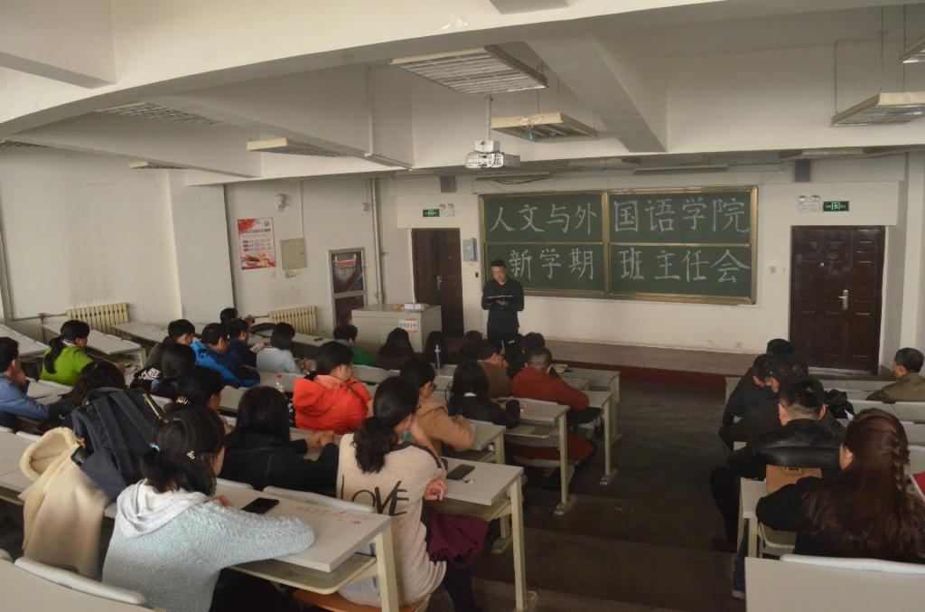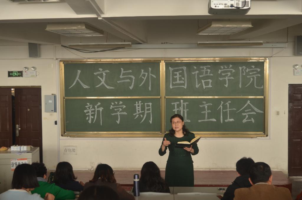 3月28日下午,人文与外国语学院在长江路校区二教阶302教室召开了新学期班主任会议。学院党总支书记王新做经验分享交流。学院领导班子及全体班主任参会。会议由党总支副书记王振主持。