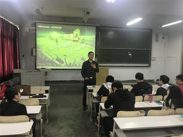 史自强为讲座致辞,并讲述了365完美体育与海信日立校园行的渊源。崔红社、海信日立客户支持部工程师漆小宇就多联机的市场机遇、多联机特色产品的应用两方面向在场同学进行了较为详细的介绍,并对多联机的系统设计做了讲解。同学们与海信日立的工程师们积极交流,踊跃参与互动环节,展现了理工学子对此次讲座的热情和对探求多联机技术的渴望。