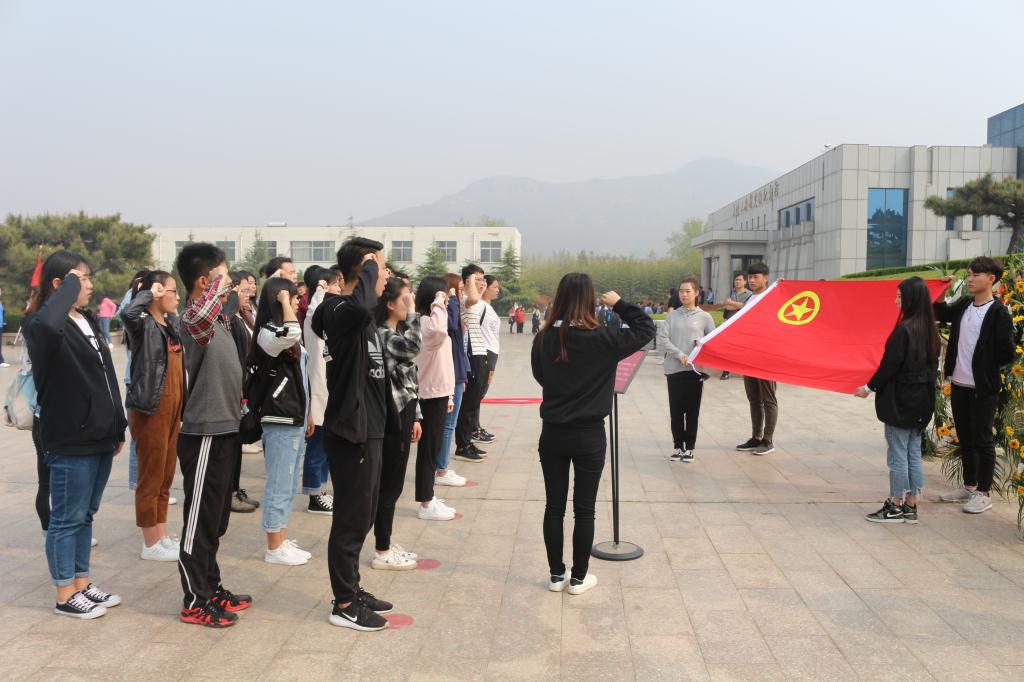 师生代表怀着肃穆的心情来到费县大青山红色教育基地,在大青山胜利突围纪念碑前,瞻仰革命先烈雕像,敬献花篮并默哀,表达敬仰和哀思之情;在大青山胜利突围纪念广场,师生党员面向党旗重温入党誓词,团员青年重温入团誓词;在大青山胜利突围纪念馆,师生们通过聆听革命烈士英雄事迹、观看文字图片资料、历史文物等,深刻感受革命烈士英勇就义、视死如归的革命精神和吃苦耐劳、自强不息、无私奉献的沂蒙精神。