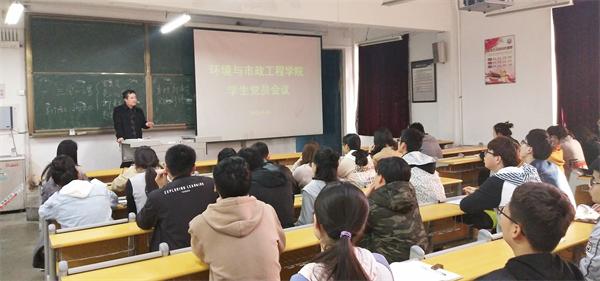 近日,环境学院学生党支部在一号教学楼327阶举行了“勇担新使命 实现新跨越”主题党日活动,旨在进一步落实落细学院党总支关于“大学习、大调研、大改进”的相关部署要求,引导支部全体党员深化对十九大精神的认识,充分发挥党支部和共产党员的作用深入学习贯彻十九大精神。环境学院党总支副书记、学生一支部书记邵长飞,团总支书记、学生二支部书记张恬,学生支部全体辅导员、学生党员参加了活动。