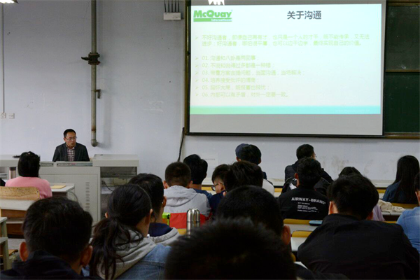 为了让学生了解专业未来发展形势,更加清晰地规划未来,更充实地规划大学生活,5月2日下午,环境与市政工程学院于一教200阶举办2016级建环与能动专业未来发展规划交流会。参加本次交流会的有应邀出席的麦克维尔有限公司青岛办事处总经理刘全明,永新集团经理刘泽山两位嘉宾,环境学院学业导师刘龙,施志钢,辅导员郑春英,2015级建环、能动专业优秀学生张宇杰,王明卿,姜丰首,张恒及2016级建环、能动专业学生。