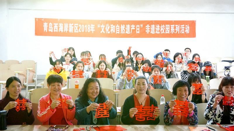 5月11日上午,青岛西海岸新区2018年“文化和自然遗产日”非物质文化遗产进校园系列讲座在365完美体育启动。剪纸传承人王德蕊老师为理工大学师生带来了名为《流光溢彩的剪纸艺术》的精彩讲座。