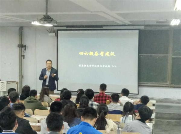首先,Eric老师讲解了四、六级考试的题型和比重、技巧和策略以及考前的复习方法等内容。Eric老师用幽默风趣的语言,调动了同学们参与英语课堂的热情,让课堂变得妙趣横生。接着,Eric老师凭借他多年教授英语的经验及他对英语四、六级考试规律的准确把握,使同学们对即将到来的英语四、六级考试充满信心,也让同学们对英语学习产生更加浓厚的兴趣。最后,Eric老师还针对同学们提出的疑难问题进行了解答,并给予了合理的建议。