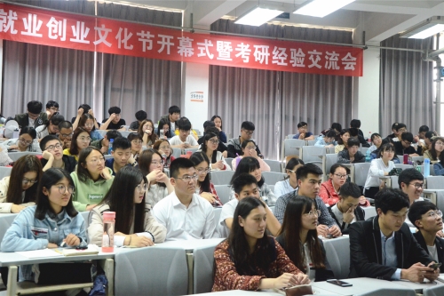 陈永亮介绍了学院今年在考研方面取得的骄人成绩。考研优秀代表田晓慧、曲贝贝、谢沛沛、刘小莹、刘珊珊依次上台传授考研成功经验,分享自己的学习方法,现场反应积极,气氛活跃,同学们收获颇丰。