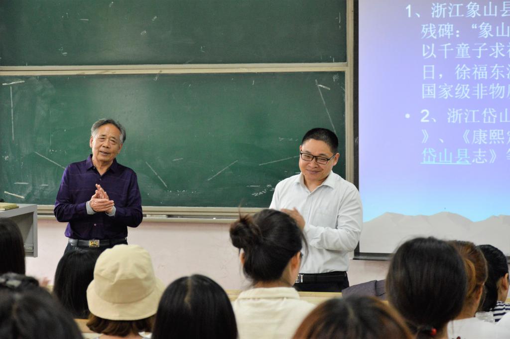 李居发先生从徐福传说的内容、价值、分布区域、史料记载、出土文物见证等五个方面对其研究过程和收获进行了详细介绍。徐福石屋传说、车辙石的传说、入海求仙的传说等14个传说引人入胜,将师生带入了美丽的传说世界中尽情翱翔。李居发先生图文结合,绘声绘色,让现场的老师和同学们享受了一场地方文化的丰富大餐。
