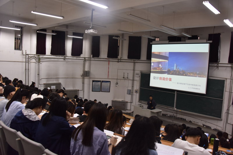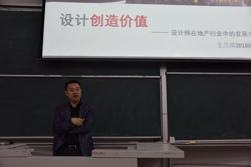 讲座上,王兰田结合自身毕业后的个人经历就“地产公司的土地客户的产品逻辑”和“个人在地产区域的发展方向”展开讲解。讲解过程中不时和同学们分享工作中的心得体会,例如:“明确自己的设计是给谁创造价值”、“信任是有条件的,信任之后是依赖”、“设计是众多信息的集散地”等。讲解结束后同学们踊跃举手提问,现场气氛十分活跃。提问结束,王兰田提议大家每天做总结、做计划,得到了同学们的热烈响应。