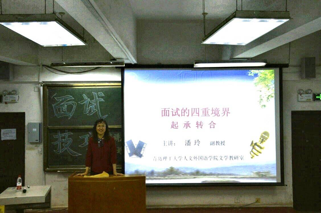 为丰富同学们的求职知识,提高在校大学生的面试竞争力,5月16日下午,人文与外国语学院面试技巧专题讲座于长江路校区二教阶304教室举办。本次讲座邀请到山东省演讲口才学会理事、青岛市演讲与演唱协会副秘书长、365完美体育汉语言专业副教授潘玲老师,潘玲副教授曾多次担任公务员面试评委;同时,她作为山东省演讲口才学会理事,具有丰厚的演讲经验与演说知识。人文与外国语学院辅导员辛雪梅老师主持此次讲座。