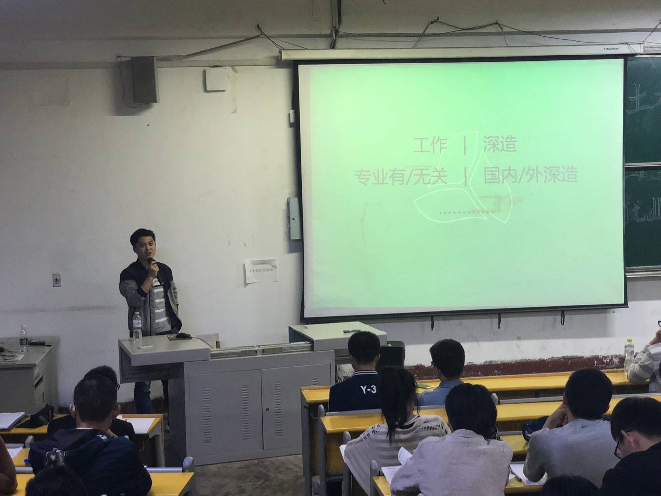 5月22日、23日晚,土木工程学院在一教一阶举办了土木方向“就业加油站”系列考研、就业交流会。本次交流会邀请到了在考研、就业、考公等方面表现突出的姚义胜、李亭、盛泽强、周国帅等八位2014级优秀学生,共有200多名2015级的同学参与交流会。