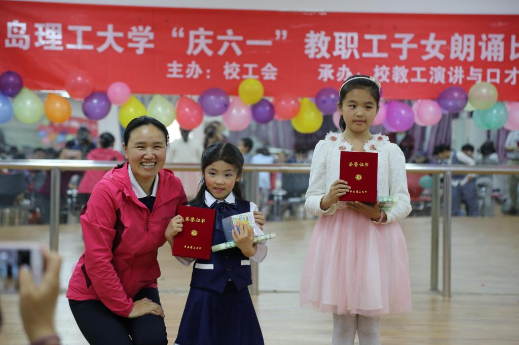 为迎接“六一”儿童节的到来,引导孩子从小注重演说能力的训练,提升运用语言的能力,增强自我表达的自信心,让教工子女度过一个愉快、和谐、有意义的节日,校工会主办、校教工演讲与口才协会承办的“书香童声·欢乐六一”教职工子女演讲朗诵比赛于5月27日下午在艺术学院排练厅举行。来自包括黄岛各分会的20个家庭报名,现场气氛热烈欢乐又紧张激烈,从四五岁的娃娃,到十多岁的少年,每一个选手都拿出了自己的看家本领和最好状态。无论是充满童趣的简单小诗歌,还是气势磅礴志向远大的名篇名句,每一个孩子都用自己的理解和感受,表达着对这个世界的好奇和憧憬,表达着对父母、老师和对祖国的热爱。