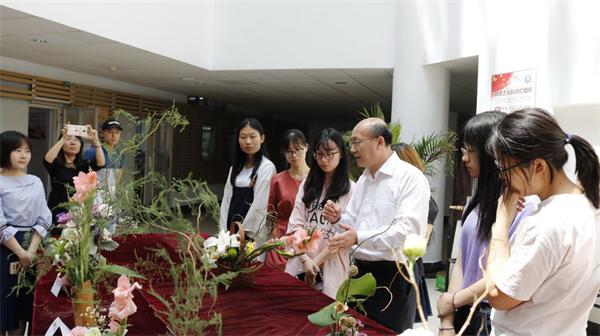 首先,朱蕊蕊介绍了插花与盆景艺术的课程安排以及中国传统插花的艺术特点。刘福智表示,插花课对同学们的审美认知提高有极好的促进作用,但我们并不能仅拘于此,要以此为契机,立足于建筑与城乡规划学院的学科背景,更好地发展本专业特色,在此基础上提高设计、动手实践能力,鼓励大家钻研、思索、创新。刘森表示,本次插花课不论在专业学习还是拓展实践方面均有很大意义,给予高度肯定,鼓励大家继续努力。展出过程中,到场老师分别与大家探讨作品主题、立意与布局、色彩搭配,指出问题与改进建议,师生共同交流,达到了以展促学,以展促教的目的。