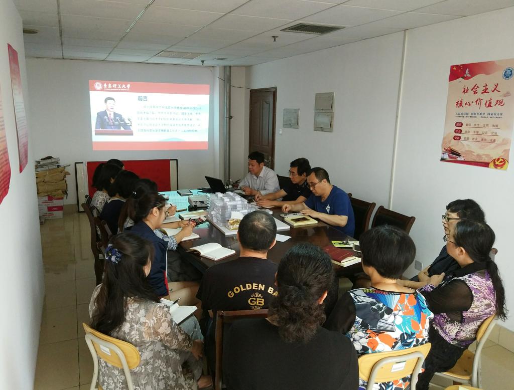 按照学校党委《关于组织开展“学习新思想千万师生同上一堂课”活动的通知》要求,教科研党总支于6月15日上午在市北校区一号教学楼327教室组织开展了“学习新思想千万师生同上一堂课”学习教育活动,活动由教科研党总支书记王龙主持,党总支所属各单位教职工参加了学习活动。