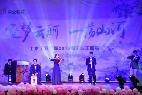 晚会坚持师生同乐,突出欢送毕业生主题,绝大部分节目由2018届毕业生参与演出。开场舞《Handclap》揭开了晚会序幕;《最佳损友》等歌曲串烧和武术《亮拳》活跃了现场气氛;由土木工程学院女教职工表演的旗袍秀更是引爆全场,同学们掌声不断;相声《趣味杂谈》令人捧腹;对唱歌曲《青岛理工》和《青梦》勾起毕业生们满满的回忆;器乐经典曲目合奏《我心永恒》诠释着经典。最后,土木工程学院教职工组成的彩砼乐队带来的《光辉岁月》、《光阴的故事》等节目将晚会推向了高潮,在热烈的欢呼中,晚会落下了帷幕。