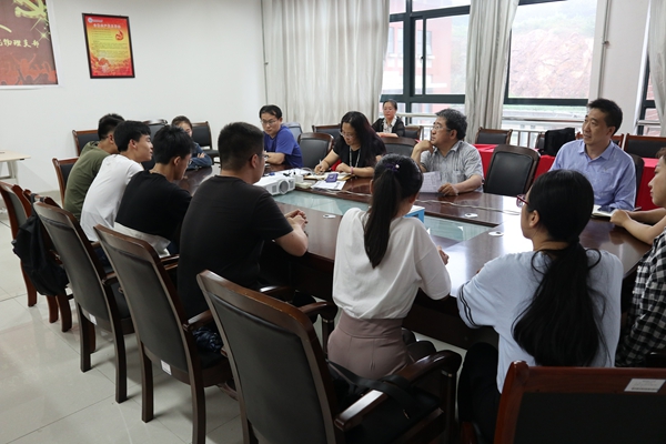 6月25日,理学院在物理实验楼205会议室举行2018届毕业生代表座谈会。院长于进伟、党总支书记邹传波、党总支副书记刘聘、教研室主任范兴奎、教学秘书任立萍以及就业辅导员周广生,部分毕业生代表和在校生代表参加了座谈会,会议由刘聘主持。