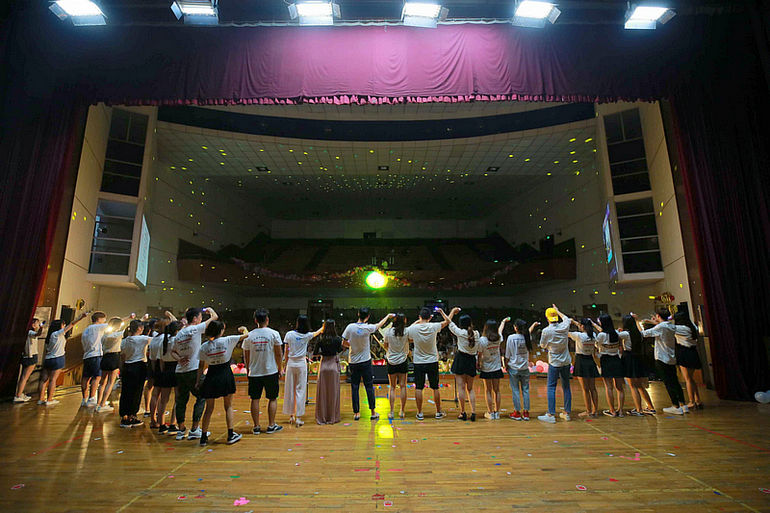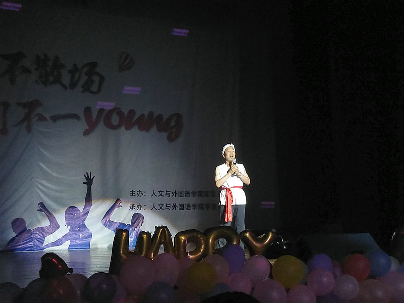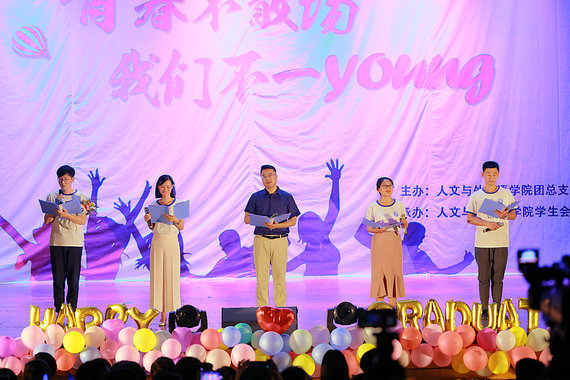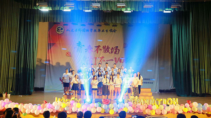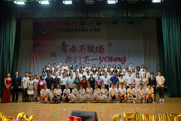 6月27日晚,人文与外国语学院于长江路校区科学会堂举办以“青春不散场,我们不一young”为主题的2018届毕业生晚会,长江路校区各职能部门领导、学院党总支书记王新、院长巩湘红、副院长王晓东、副院长郭印、党总支副书记王振及学院专业老师观看演出。节目类型包括小品、相声、歌曲与舞蹈串烧以及诗朗诵等,师生同台,形式多样,内容丰富。