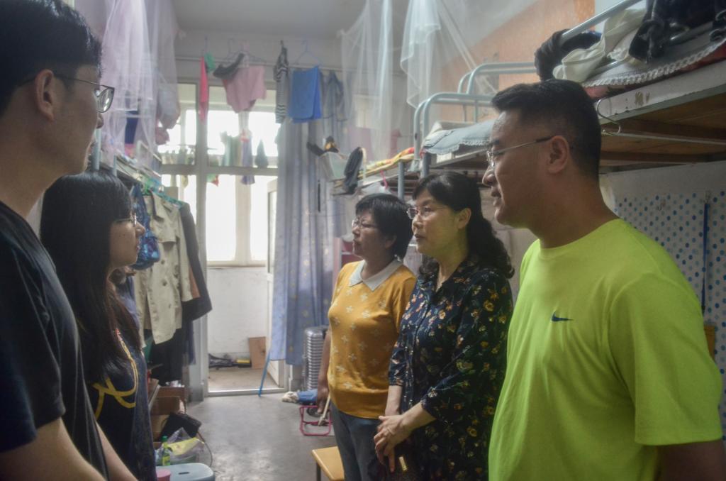 在走访过程中,领导班长们深入了解了毕业生们在校四年的生活状况,并且督促同学们站好最后一班岗,认真做好宿舍卫生,离校时注意安全。王新对同学们顺利毕业表示祝贺,并且就毕业生们的就业情况、离校手续的办理情况等进行了交流。大家询问了毕业生的就业去向和今后的规划,为毕业生提出宝贵意见。五公寓127宿舍是班长所在宿舍,也是四年的标兵宿舍,良好的宿舍卫生环境给大家留下了深刻印象,领导们纷纷点赞。