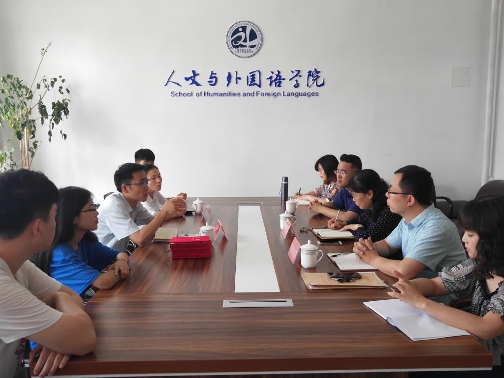 6月29日,在喜迎建党97周年之际,青岛西海岸新区嘉陵江东路社区党委书记李建中、社区主任荆晓艳一行莅临人文与外国语学院交流“共学共建”项目经验,探讨完善共建机制。人文与外国语学院党总支书记王新、副书记王振、人文专业教工党支部书记杨书胜等参加交流会。