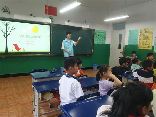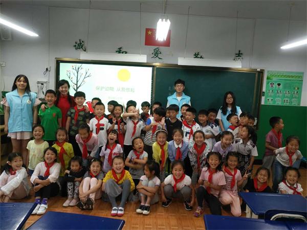 近日,环保协会的志愿者小组来到了青岛香港路小学,在一年级五班开展了环保教育活动,班主任刘老师和同学们热情的欢迎了志愿者们,本次环保教育的主题是“保护动物,从我做起”。