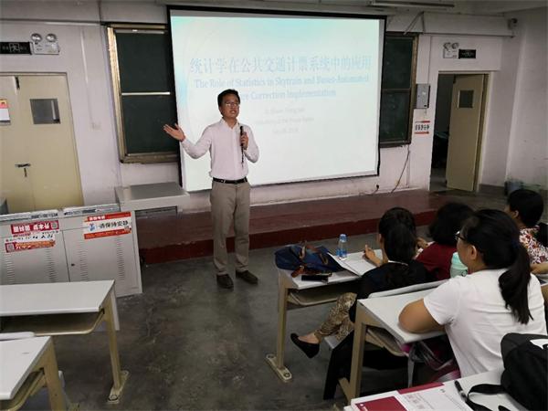 首先,乐国林介绍了孙正博士求学、工作简历和专业背景,并对孙正博士的讲学交流表示欢迎。孙正博士首先介绍了统计学的发展历程,随后基于前沿视角对统计学在国外发展现状进行了讲解。接着,孙正博士根据自己的应用研究成果,就“统计学在公共计票系统中的应用”进行精彩学术分享。他结合国内外地铁换乘时间与次数,详细阐述了统计学在公共计票系统中的应用,并从数理角度对线性回归等方法进行了简要介绍,结合研究案例对数据搜集、方法选取、模型阐述、结果分析等进行了详细解读。在师生互动环节,孙正博士就统计学领域专业问题、出国深造、统计学专业工作选择等问题进行了解答,同学们受益匪浅。冯等田对讲座进行了总结。