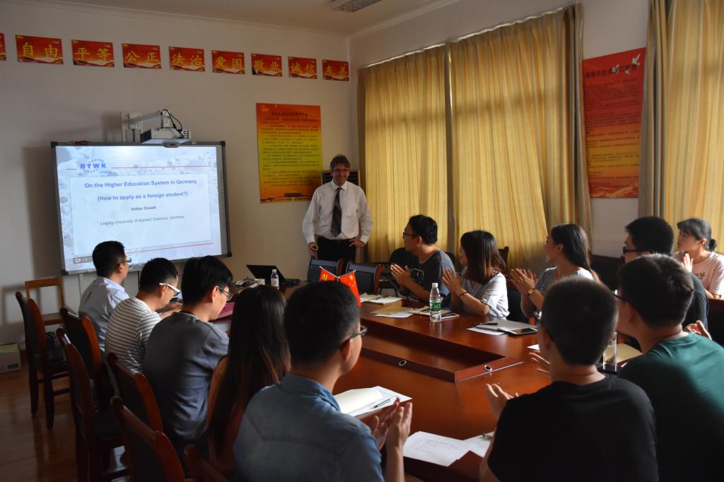 斯洛维克教授分别于7月17日—25日共进行了6次报告,先后分别讲解了德国高等教育体制与申请留学生的方法、混凝土毛细收缩开裂的实验和数据模拟、纤维增强水泥基材料的特性、混凝土断裂性能实验的逆分析、现有圬工拱桥的安全性评估——非线性有限元仿真与试验研究、现有建筑物和砌体结构的载荷实验6个方面内容。斯洛维克教授的讲解充实细致,科学严谨,引起了在座师生的踊跃提问和热烈反响。