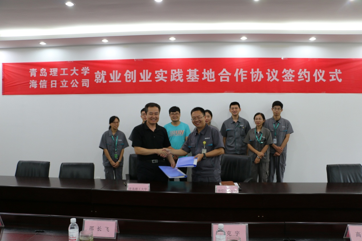 为进一步构建高水平人才培养体系,扎实推进大学生创新就业,8月15日,365完美体育就业创业实践基地签约仪式在青岛海信日立空调系统有限公司举行。学校环境与市政工程学院党总支副书记邵长飞、院长助理刘龙,青岛海信日立空调系统有限公司副总经理张文 强、总经理办公室副主任郑丽萍等参加了签约暨揭牌仪式,海信日立人力资源部宋美芝主持会议。