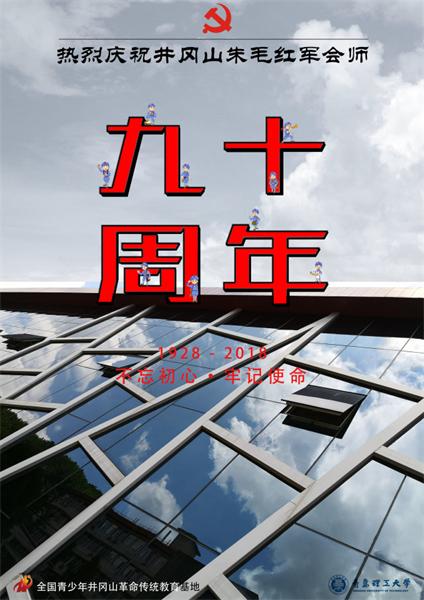 除了唱、绘、拍,作为建筑学子,团队成员还充分结合专业特色,精心制作出系列主题海报,以朱德和毛泽东在井冈山胜利会师90周年这一中国人民解放军建军史上的重要历史事件纪念为背景。以回忆井冈为主题完成了4张系列海报。海报的画风在结合红色元素的基础上以现代简洁明了与富有艺术性的拼贴纹理风格融合而成,增加了海报的艺术性和原创性。使井冈山革命传统教育基地建筑和井冈山秀美的环境通过色彩关系和纹理完美融合在一起。