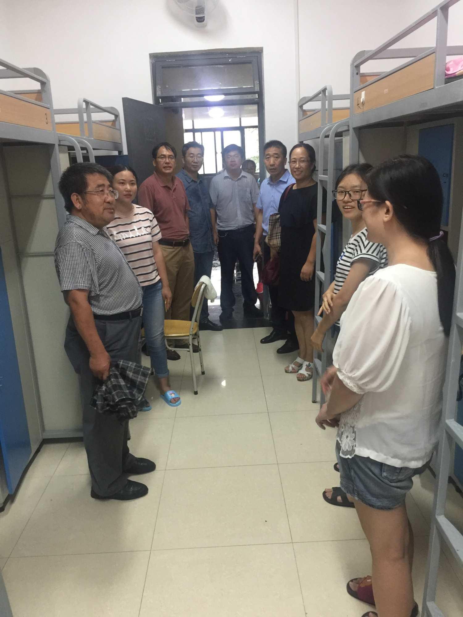 8月29日下午,理学院院长于进伟、党总支书记邹传波、党总支副书记刘聘、副院长马鸿洋、孔亮,教研室主任范兴奎及学生辅导员等冒着大雨走进新生宿舍,为2018级研究生送去温暖关怀。