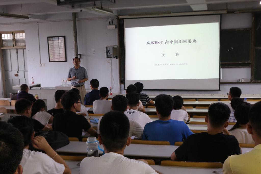 黄强从BIM的起源开始讲起,并列举了BIM的多种优点以及可以解决的问题,用生动形象的语言向师生们介绍了BIM的明确定义以及BIM的存在价值。紧接着,黄强向在座的师生介绍了模式应用的两种意义,并用实例进行了验证。随后,又对WBS工作分解结构进行了介绍并对建筑工程系全生命期WBS的特点进行了详解。最后,进行了现场答疑,在座师生踊跃提问,现场反响热烈。