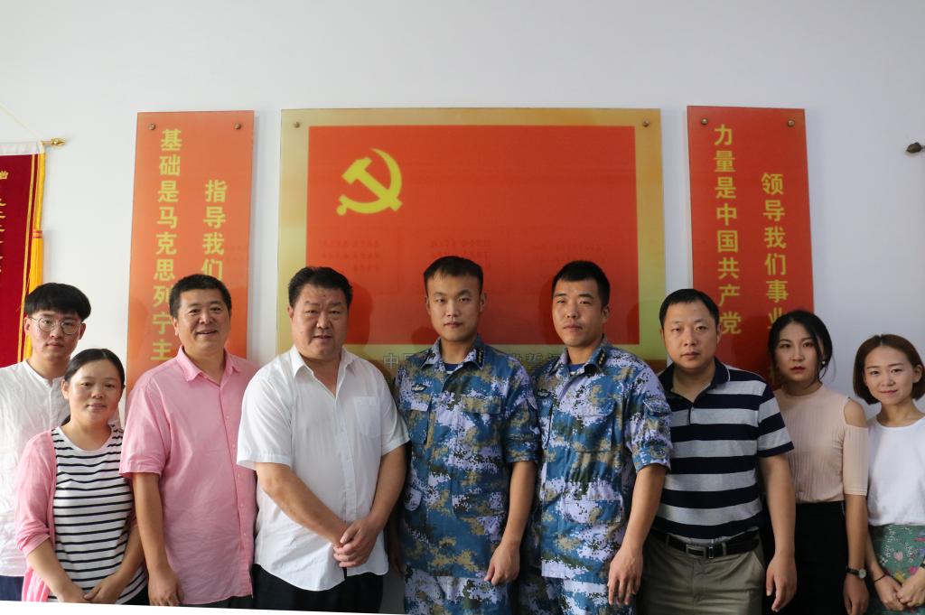 为贯彻十九大报告中指出的形成军民融合深度发展格局”的战略部署,深入实施军民融合发展,9月6日,艺术与设计学院党总支书记孙波、党总支副书记徐佐君、团总支书记刘红艳、音乐教研室副主任张萌和部分学生党员赴92212部队警勤连,与部队官兵就今后的军民共建事宜做了深入的探讨。