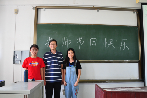 9月10日,上课的学生早早地来到了教室,在黑板上写下了对任课老师们的教师节祝福,当上课铃声响起,全体同学起立祝老师教师节快乐,向老师传达自己的节日祝福与感激并鞠躬致敬。同学们在课前全体起立,表达问候,像是回到了中学时代的课堂。在课间,同学们都纷纷找老师合影留念,各个班级拿出备好的花束或贺卡,走上讲台献给老师。还有些同学走进老师的办公室,与老师进行交谈,感谢老师的同时畅谈自己的人生规划。