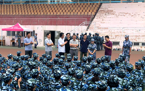 9月11日上午,建筑与城乡规划学院党总支书记肖学斌、院长许从宝、党总支副书记高江、副院长刘崇、各系部主任王少飞、刘一光、张安,办公室主任李扬,各年级辅导员到军训现场亲切看望了军训教官和2018级军训新生。