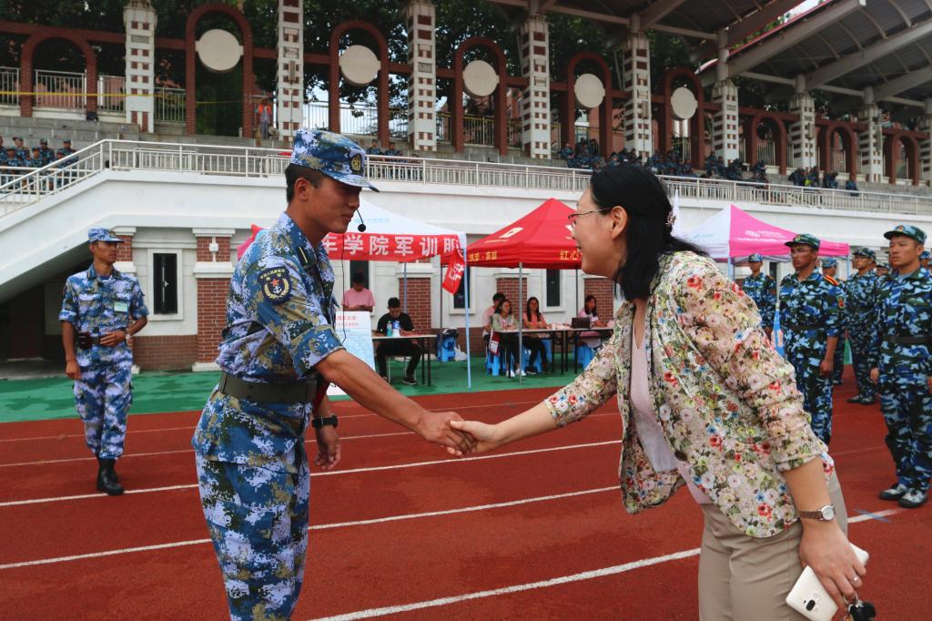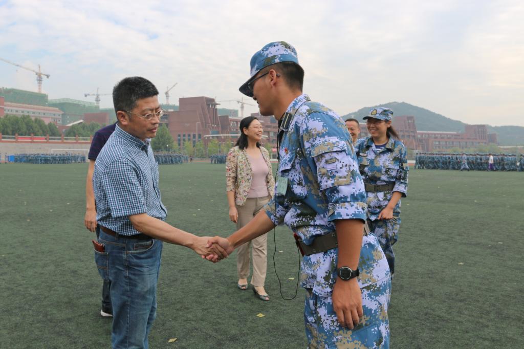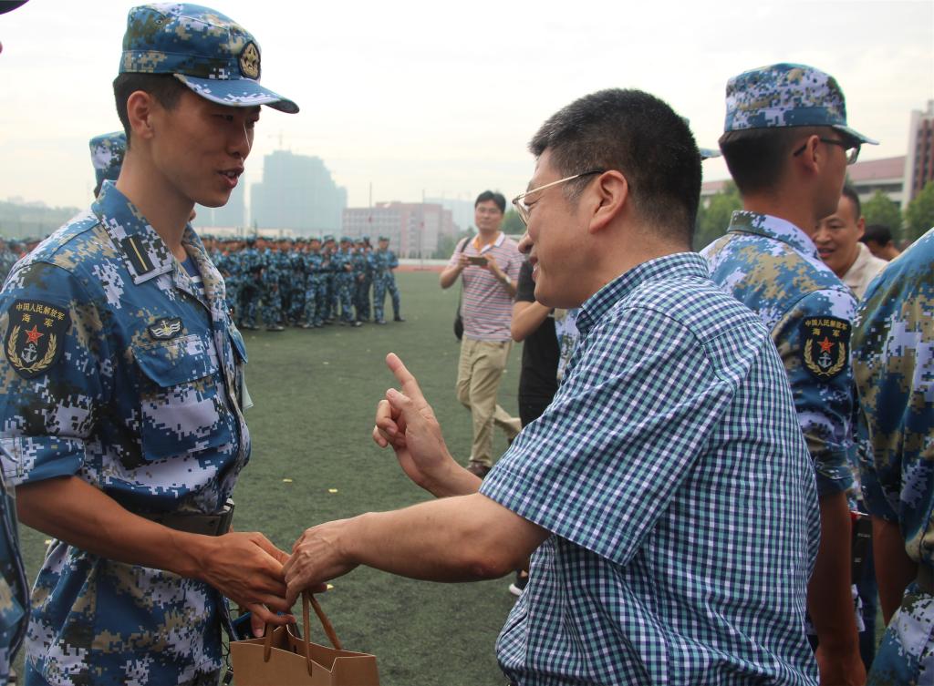 为感谢军训期间教官对新生的无私教导和辛苦付出,9月11日上午,机械与汽车工程学院党总支书记岳丽宏、院长郭峰、党总支副书记林海涛、副院长王优强、潘福全、团总支书记隋学智一行到达训练场对教官们进行亲切慰问。