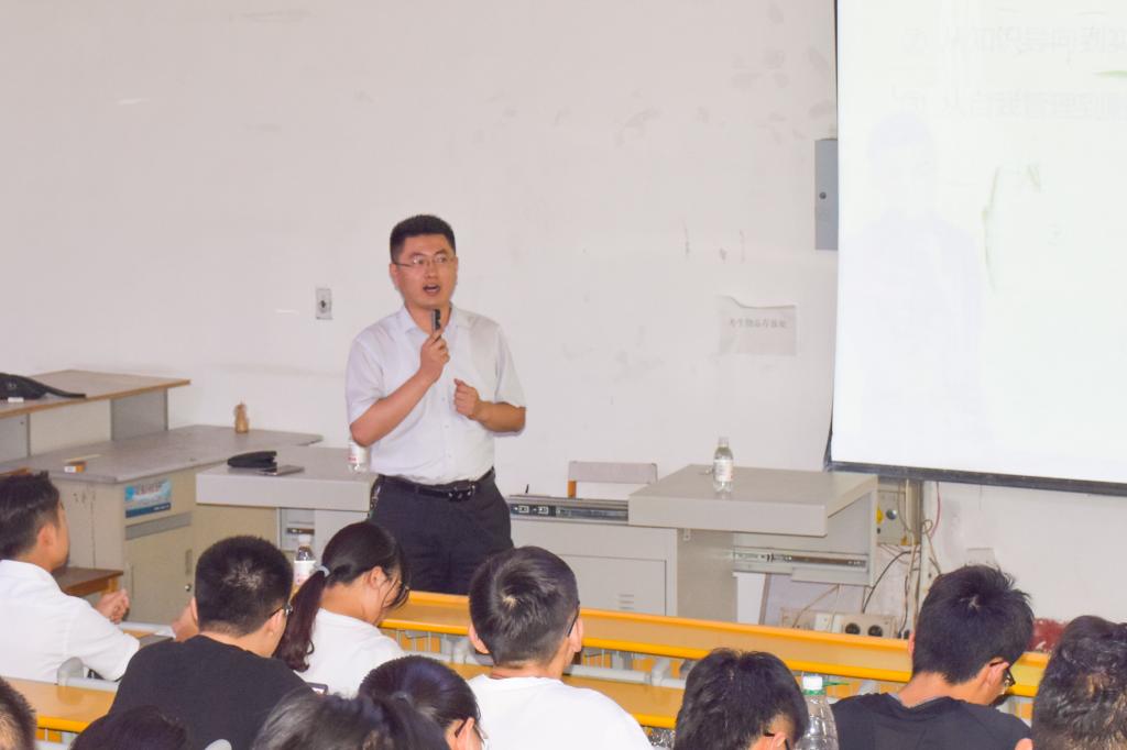 马泽名从“校园到社会的跨越”讲起,并在“从对自己负责到对组织负责”、“从知识导向到务实导向”、“从自我管理到融入组织”三个方面为大家展开详细解释。接着,马泽名又为大家对“企业是什么场所”展开了描述,强调了企业是可以体现个人价值的场所。随后,马泽明向大家阐述了大学生初入职场的四个转变:个体导向到团体导向的转变、性情导向到职业导向的转变、思想导向转变到行动导向的转变、成长导向到责任导向的转变。最后,马泽名用生动形象的语言给大家讲述了“团队就是由技能互补,愿意为了共同的目的和业绩目标相互承担责任,通过一定的方法和规则来实现的人所组成的群体”,并进行了现场答疑。讲座上,在座的同学们踊跃提问,反响热烈。
