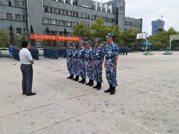 9月12日上午,商学院领导班子成员来到军训场地,看望慰问承训教官、参训学生和现场带训的辅导员。