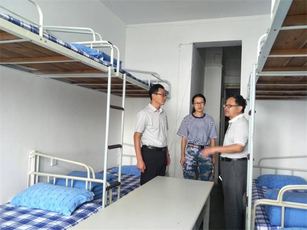 检查过程中,学院领导对新生宿舍的地面卫生、床铺、阳台和盥洗室卫生、墙面及窗台进行了检查,指出了可能存在的安全隐患。正值军训期间,在高要求的内务整理标准下,新生宿舍的被子都整齐划一地叠成了“豆腐块”,床单也很平整。本次新生宿舍检查结果显示,大部分新生宿舍都保持着较好的卫生,安全状况也符合学院要求。王粲提出,学生工作要落到实处,要做好“两个场所”的工作,对学生学习和生活的两大主要场所——教室和寝室的情况要掌握清楚。王粲强调,宿舍的文明、卫生与和谐,关系着校园的安定团结,学工队伍要着重关注、定期走访宿舍,要和学生多交流、多沟通,与学生交朋友,帮助学生更好地成长成才。