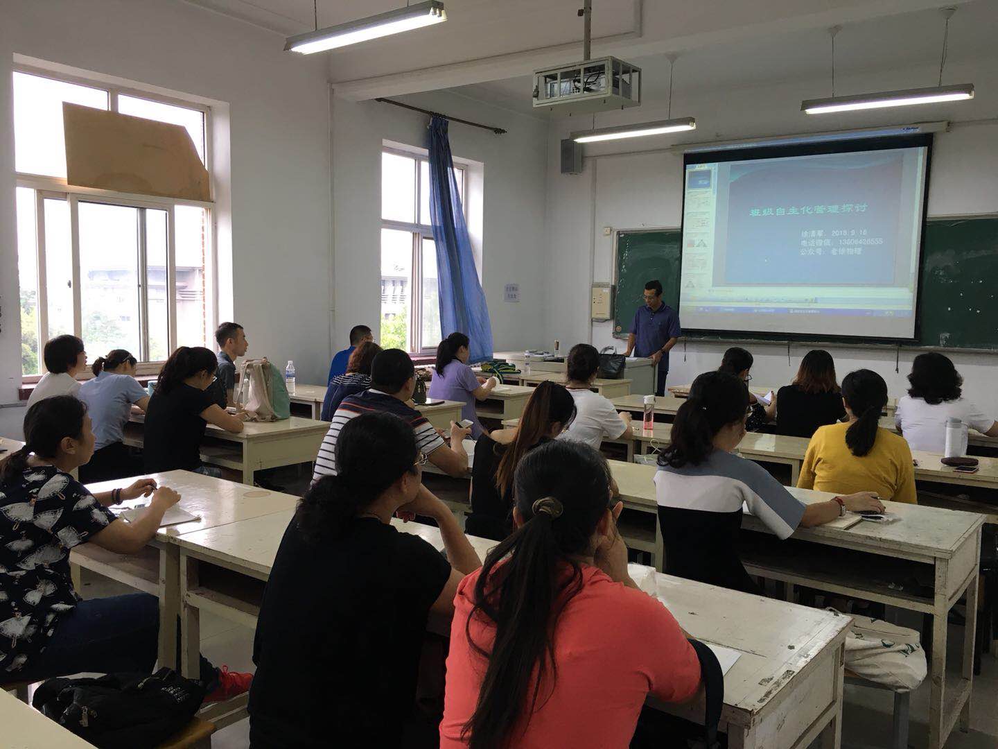 徐清军老师以《班级的自主管理与实践分享》为题,结合自己多年对班级自主管理理论的学习与实践,借助案例形式讲述自主管理的必要性、自主管理的实施路径以及自主管理的实践意义,让老师了解学生自主管理教育的核心,真正掌握完整的班级自主教育管理模式,从而减轻班主任工作压力,提高工作效率。