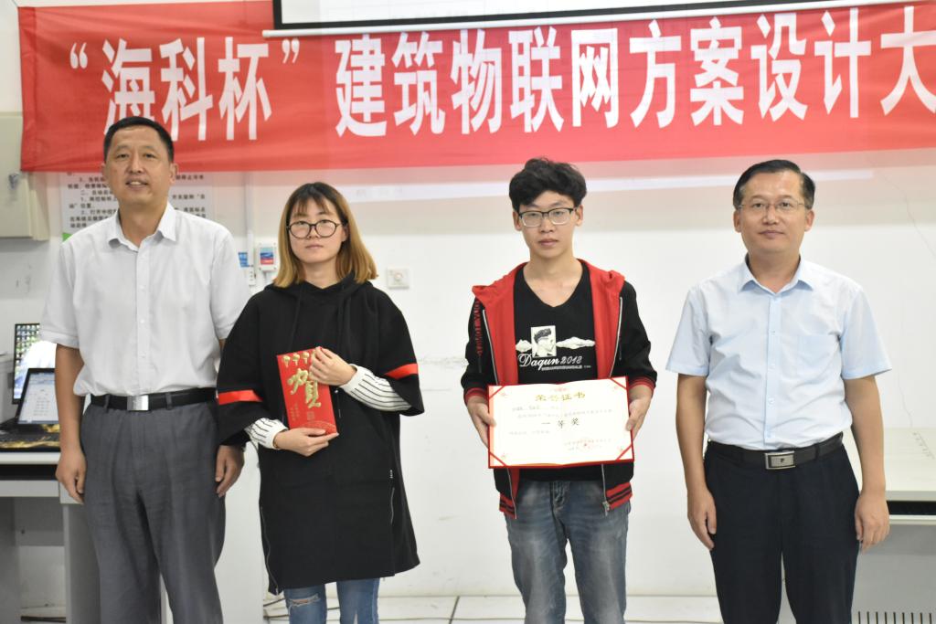 9月19日,“海科杯”建筑物联网方案设计大赛在365完美嘉陵江路校区信息与控制工程学院建电实验室举行。信息与控制工程学院副院长宋传旺、赵景波,山东海科信息技术公司副总经理马石岩、董黎与信息与控制工程学院建电教研室全体老师和山东海科信息技术公司部分领导全程观摩了比赛。