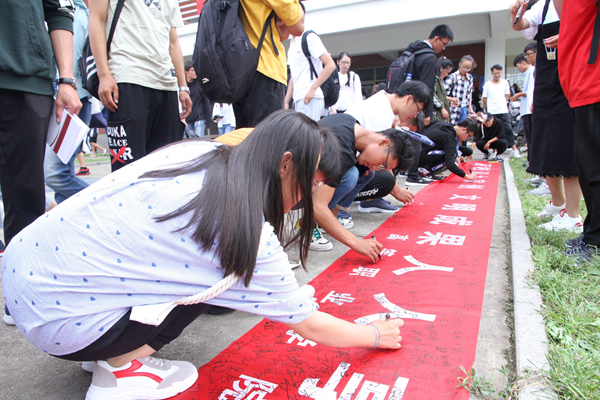 9月21日中午,高等职业学院在长江路校区二教楼下举行“美丽校园大家创 文明成果人人享”横幅签名活动。全体在校学生参加了此次活动。