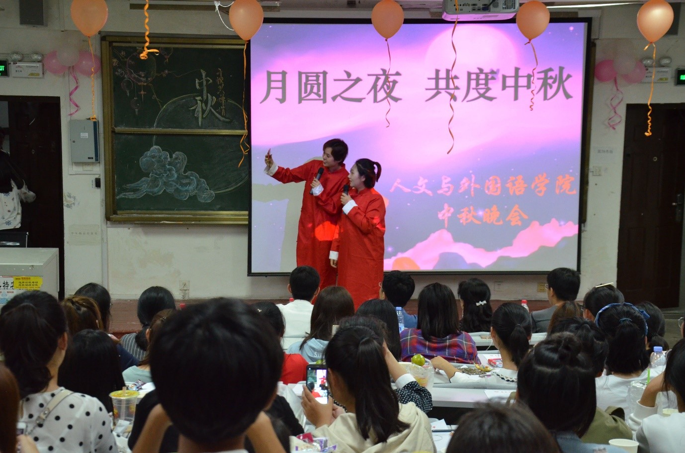 “海上生明月,天涯共此时”,9月24日晚,人文与外国语学院在长江路校区二教阶301教室举办“月圆之夜,共度中秋”新生中秋晚会。学院党总支书记王新、党总支副书记王振、辅导员马松、贾舒文与200余名新生共度中秋佳节。