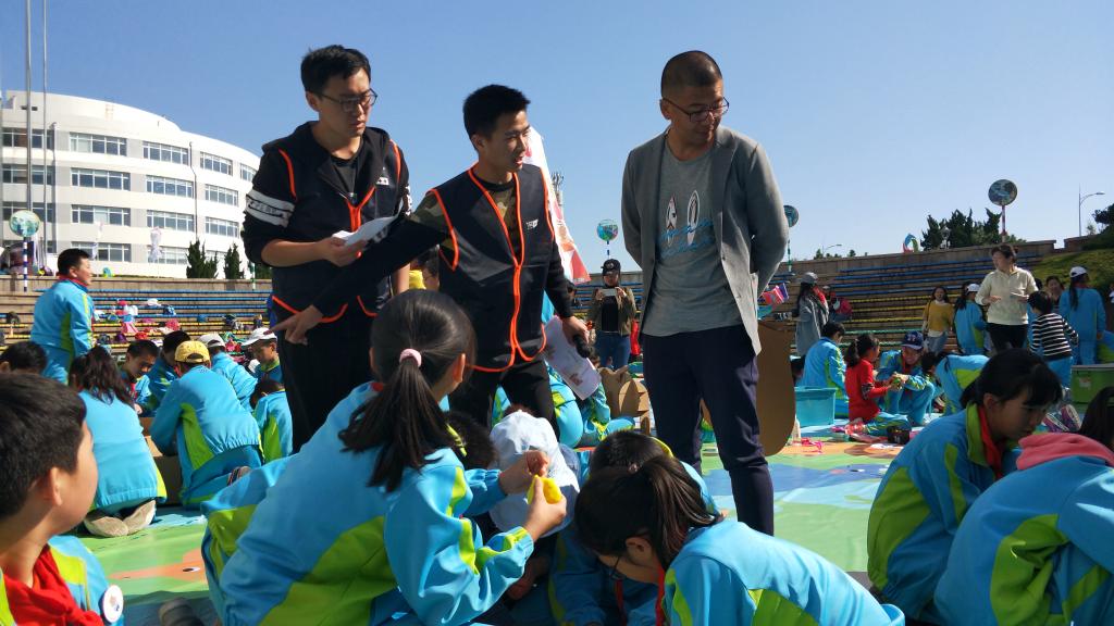 上午八点,经过简单的培训及分工后,志愿者们进行开幕式的前期准备工作。大家用花架、气球、旗帜和玩偶等营造出了一个欢快而端庄的节日氛围。上午九点,“和乐国际泥巴节”正式开幕,土木工程学院的志愿者们负责现场秩序的维护和引导工作,青岛市辽源路小学的同学们在志愿者的引领下开展活动。在上午的活动中,志愿者们协助各班孩子完成模型制作、橡皮泥创意造型制作以及泥巴大战等活动,通过大家的共同努力,一幅幅泥巴制作的精美作品呈现给现场的观众,而志愿者们忙的身影成为活动一道亮丽的风景线。