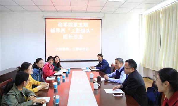 10月23日上午,商学院在长江路校区1教403室举办第五期辅导员“工匠辅头”成长沙龙。此次沙龙邀请马克思主义学院党总支书记王菁华教授担任主讲,商学院党总支书记王粲、副书记董兰国、全体辅导员参加沙龙。