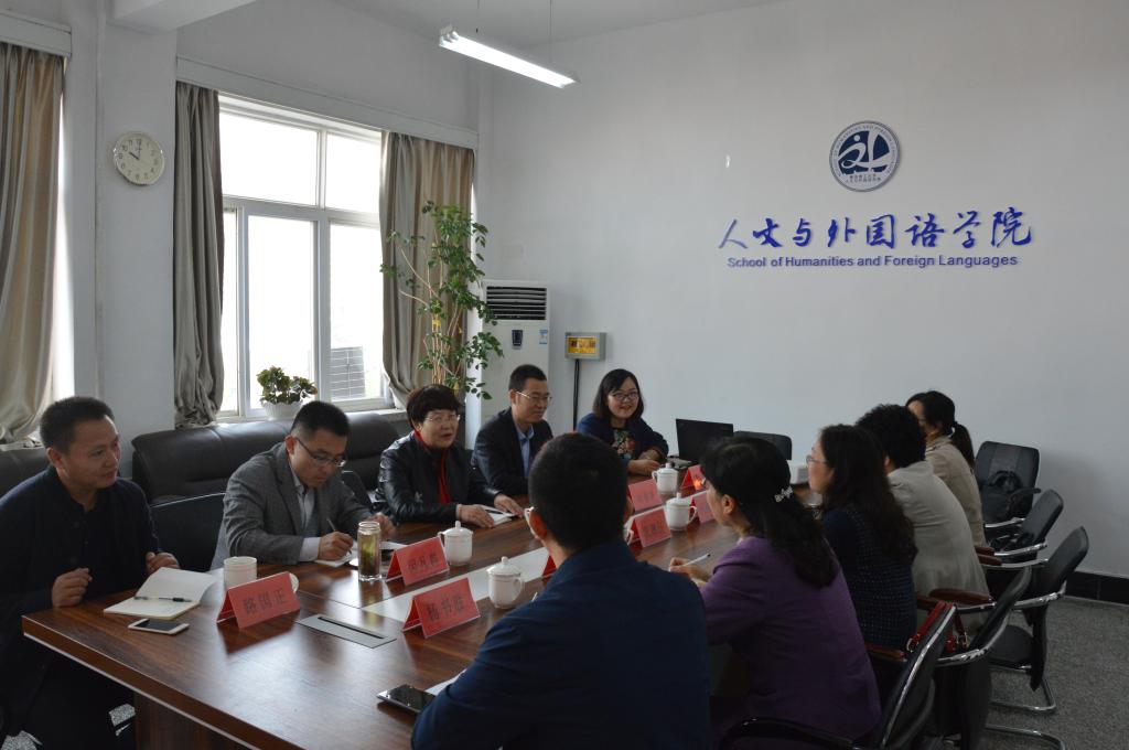 10月25日上午,临沂大学法学院院长姚建涛、副院长邱春林、社会工作系主任李艳丽等一行五人来我院调研交流。人文与外国语学院党总支书记王新、院长巩湘红、副院长王晓东、院长助理杨书胜、社工教研室主任刘世颖参加了调研交流活动。