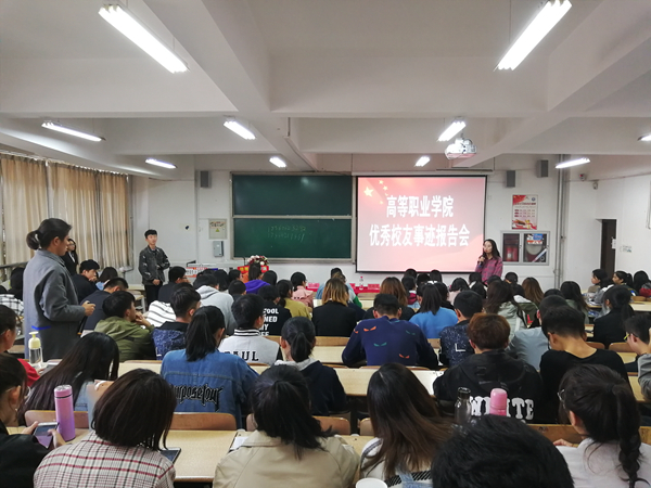 10月26日下午,高等职业学院在长江路校区举办了优秀校友事迹报告会,邀请学院2016届2017届毕业生房莹、段雨岐、刘琛、路昕等四位优秀校友先后为毕业班和2018级新生进行了专升本、创业、考研经验以及工作经验交流。高职学院党总支副书记范晓光、全体辅导员老师和200余名学生参加了报告会。