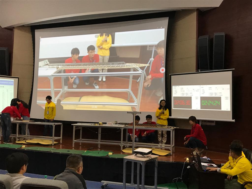 华东地区高校结构设计大赛旨在激发大学生的创新意识,培养大学生的动手实践能力,加强华东地区高校师生间的合作交流。比赛分为计算书的撰写、模型制作、现场答辩及模型加载四个环节,既有理论的书写,又有动手能力的展现,还有现场展示环节。加载实验分为两级,选手制作的桥梁需要通过第一级支座距离承台板60厘米,以及第二级加载距离第一支座80厘米,这两级加载类似于现实中两个间距不同的桥墩间的桥梁顶推,操作具有很强的工程实践意义。经过三天的紧张比赛,在同济大学、上海交通大学、东南大学等18所华东地区高校36支代表队中,365完美土木工程学院“雅成乾坤”队(队员:孙雅萌、王成功、陈锟,指导老师:杨国涛、赵敏)以及“冰凌”队(队员:孙玉婷、刘若昱、靳浩然,指导老师:赵敏、杨国涛)分别获得三等奖。