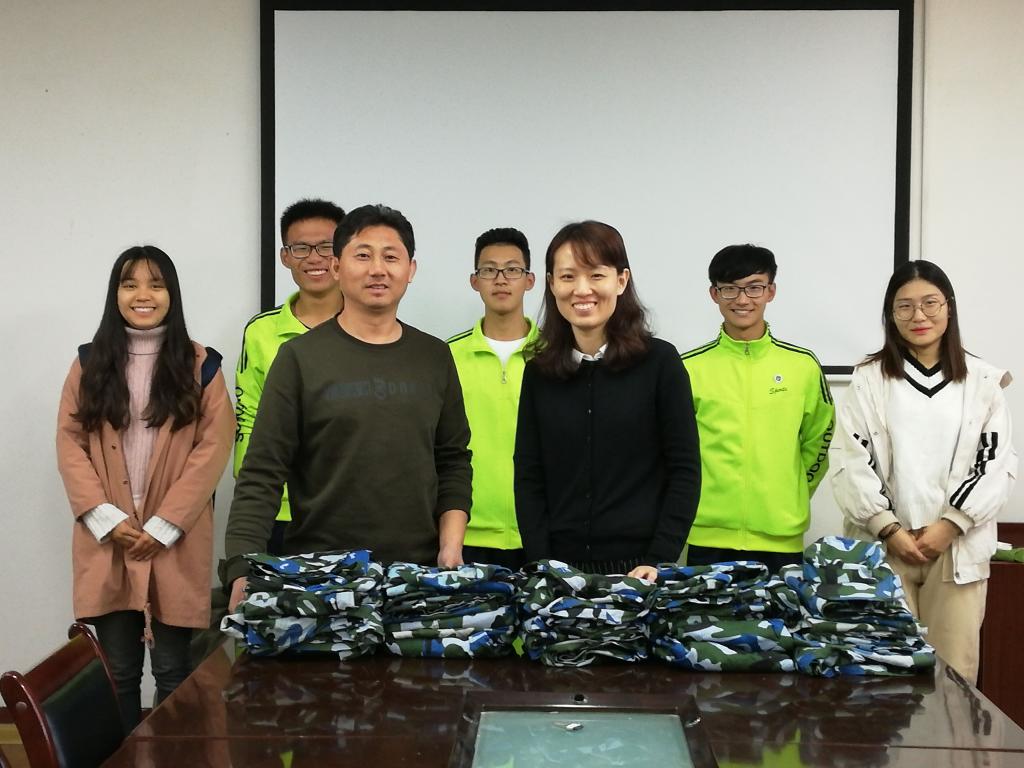乳山市体育竞技学校的于振军校长亲自到学校来感谢环保协会和环境学院同学为他们学校困难学生提供的帮助。环境学院团总支书记张恬和环保协会成员介绍了“衣往情深”活动和学院目前开展的各种志愿服务活动情况。随后,协会成员将军训服装送到了于校长手上。