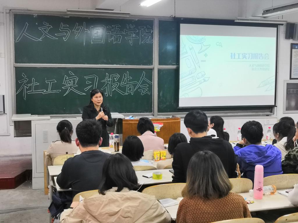 巩湘红总结了本次会议的收获和问题,就专业水平、PPT制作、实习过程的不足以及对社工学生的期望等方面进行发言,并表示社会工作已经设立专业硕士点,期待专业未来的大发展。